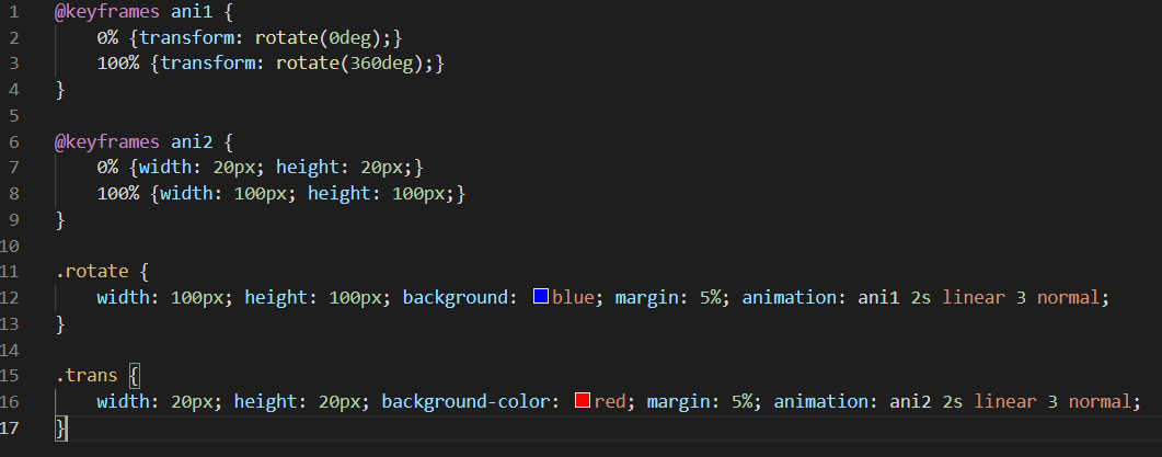 width: 100px; height: 100px; background: blue; margin: 5%; animation: ani1 2s linear 3 normal;