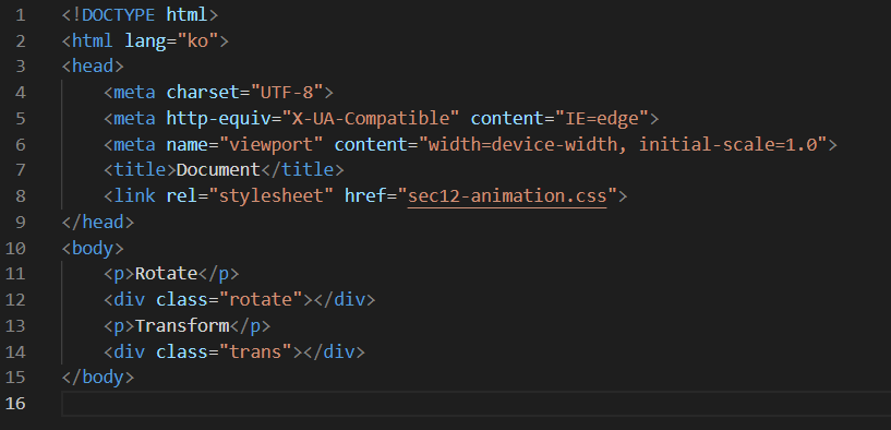 [그림2]에서 사각요소를 회전시키고자 rotate라는 클래스를 작성하여 설정하였습니다.